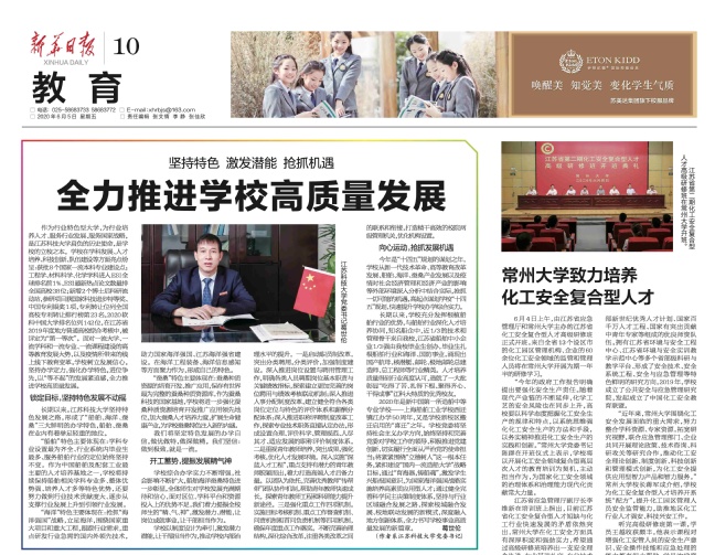 新華日報《堅持特色 激發潛能 搶抓機遇 全力推進學校高質量發展》(2020年6月5日)