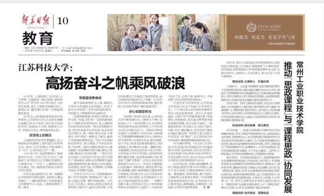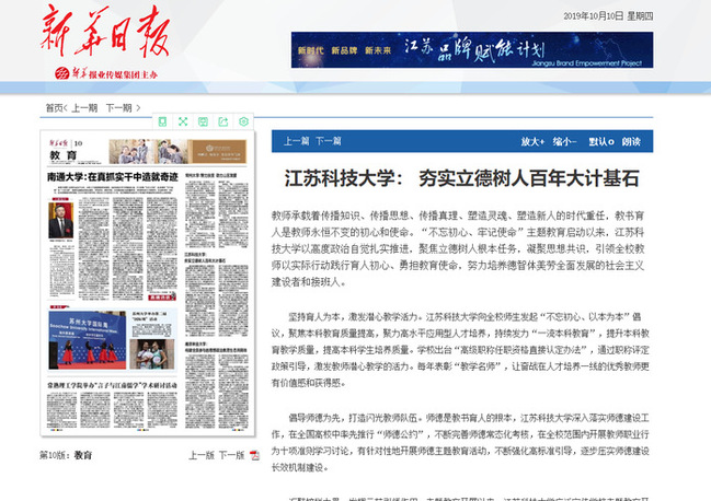 新華日報《江蘇科技大學:夯實立德樹人百年大計基石》(2019年10月10日)