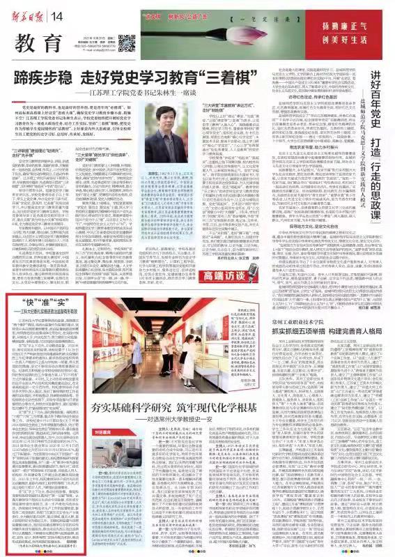 新華日報《“快”“準”“實”——江科大紀委扎實推進政治監督有形有效》(2021年10月26日)