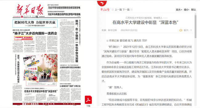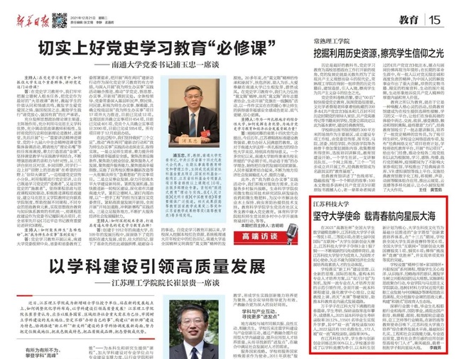 新華日報《江蘇科技大學堅守大學使命 載青春航向星辰大海》(2021年12月21日)