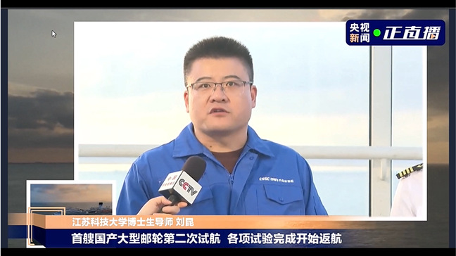 央視新聞《我國首艘國產大型郵輪第2次試航成功!江科大教師參與研發并接受采訪》