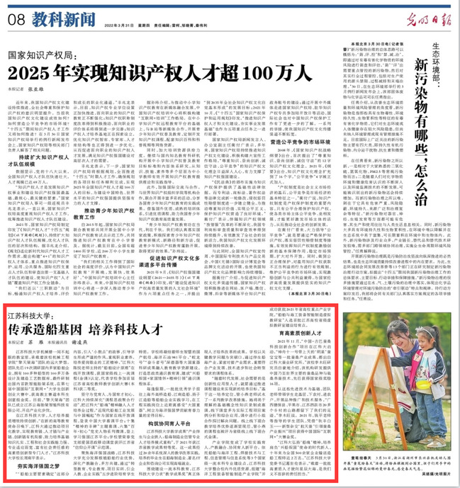 光明日報《傳承造船基因 培養科技人才》(2022年3月31日)