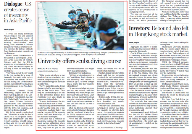 中國日報(海外版)《Universityoffers scuba diving course》(2022年6月13日)