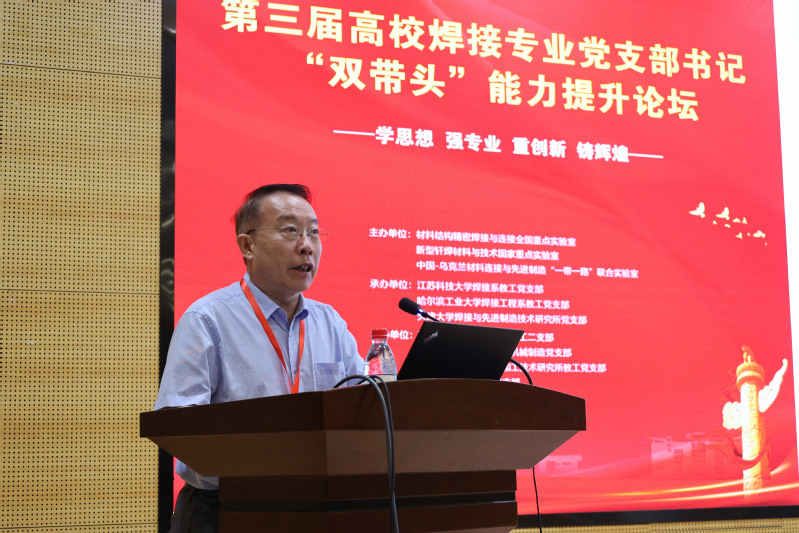 本屆論壇以“學思想 強專業 重創新 鑄輝煌”為主題,探索高校焊接專業黨支部建設新舉措,融合教學、科研、文化、組織等育人功能,聚焦黨支部雙帶頭人能力建設,推動主題教育走深走實。論壇由中國機械工程學會焊接分會指導,先進焊接與連接國家重點實驗室、新型釬焊材料與技術國家重點實驗室、中國-烏克蘭材料連接與先進制造“一帶一路”聯合實驗室共同主辦,江蘇科技大學焊接系教工黨支部、哈爾濱工業大學焊接工程系教工黨支部、天津大學焊接與先進制造技術研究所黨支部承辦。江蘇科技大學材料學院黨委書記李瑞峰擔任本屆論壇主任委員;材料學院副院長、焊接系教工黨支部書記胥國祥擔任輪值主席。