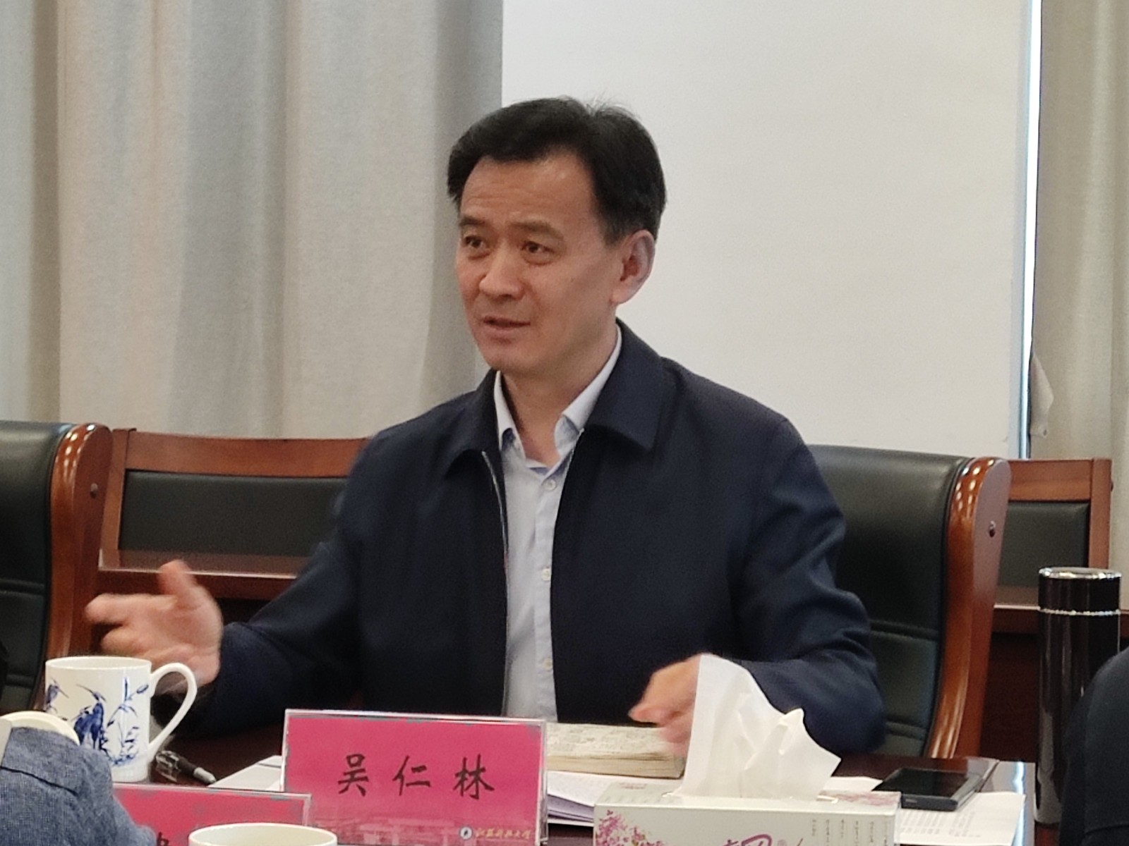 潘錦全對徐建清處長、吳仁林處長和曹林調(diào)研員一行來校指導(dǎo)表示歡迎,并介紹了我校辦學(xué)歷史、發(fā)展現(xiàn)狀、取得成就等情況,校審計處處長季紅艷介紹了我校內(nèi)部審計工作開展情況。