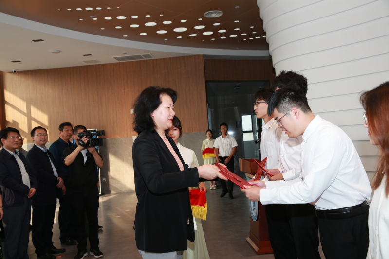 學校面向全體學生選拔首批學生講解員30名,他們將是“江科大故事”的講述者,也將承擔學校精神文化傳播的光榮任務。儀式現場,校長嵇春艷為學生講解員代表頒發聘書。