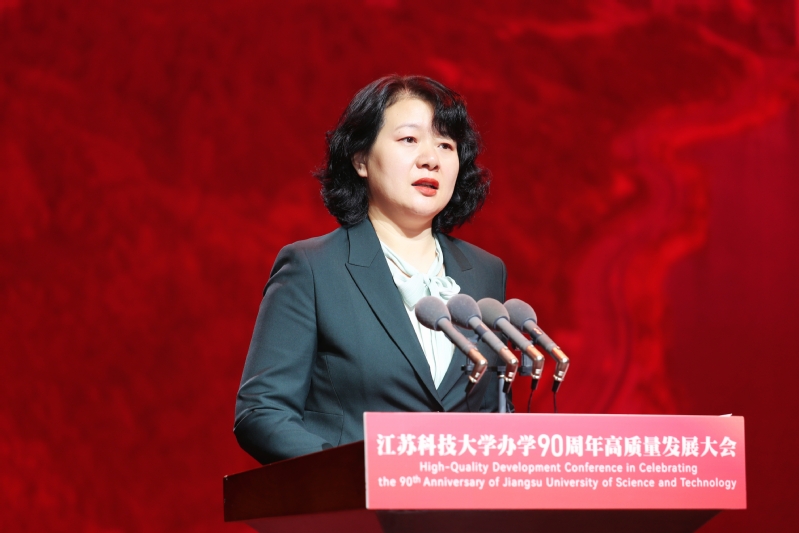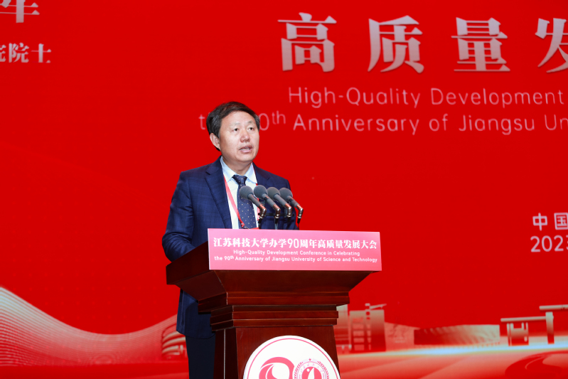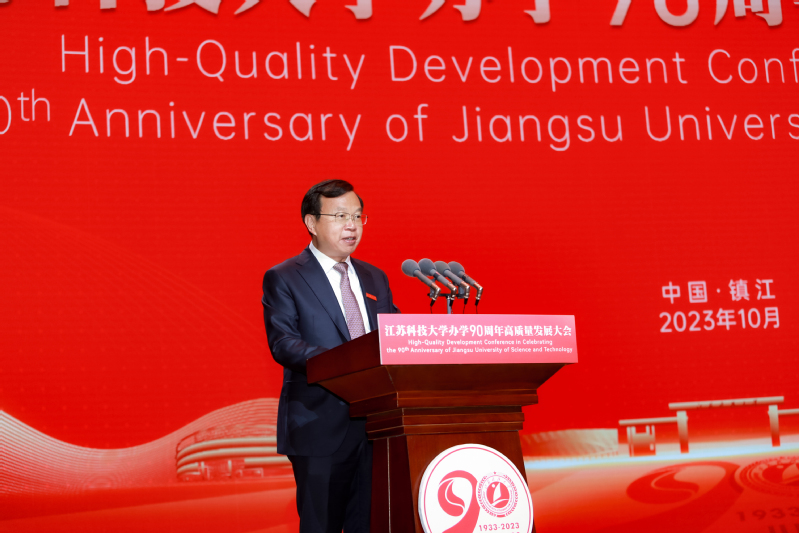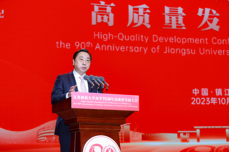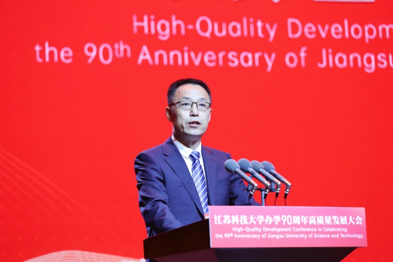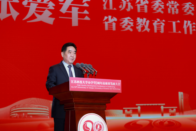 中共江蘇省委常委、宣傳部部長(zhǎng)、省委教育工作領(lǐng)導(dǎo)小組組長(zhǎng)張愛軍在講話中,代表省委、省政府向江蘇科技大學(xué)全體師生員工和海內(nèi)外校友表示誠摯問候,充分肯定90年來江蘇科技大學(xué)為國家和江蘇經(jīng)濟(jì)社會(huì)發(fā)展作出了重要貢獻(xiàn)。他說,當(dāng)前江蘇正牢牢把握習(xí)近平總書記賦予的“走在前、做示范”重大要求,全面落實(shí)“四個(gè)走在前”和“四個(gè)新”重大任務(wù),譜寫“強(qiáng)富美高”新江蘇現(xiàn)代化建設(shè)新篇章。站在新的歷史起點(diǎn)上,我們對(duì)高等教育、科技自立自強(qiáng)和卓越人才的渴求,比以往任何時(shí)候都更加迫切和強(qiáng)烈。作為一所具有本碩博完整培養(yǎng)體系的特色大學(xué),江蘇科技大學(xué)在現(xiàn)代化建設(shè)的廣闊舞臺(tái)上大有可為,也必將大有作為。希望學(xué)校以慶祝辦學(xué)90周年為契機(jī),始終堅(jiān)持以習(xí)近平新時(shí)代中國特色社會(huì)主義思想為指導(dǎo),把牢正確方向、守牢教育初心、扛牢責(zé)任擔(dān)當(dāng)、筑牢特色優(yōu)勢(shì),堅(jiān)持走特色發(fā)展、內(nèi)涵發(fā)展之路,奮力開創(chuàng)高水平大學(xué)建設(shè)新局面。