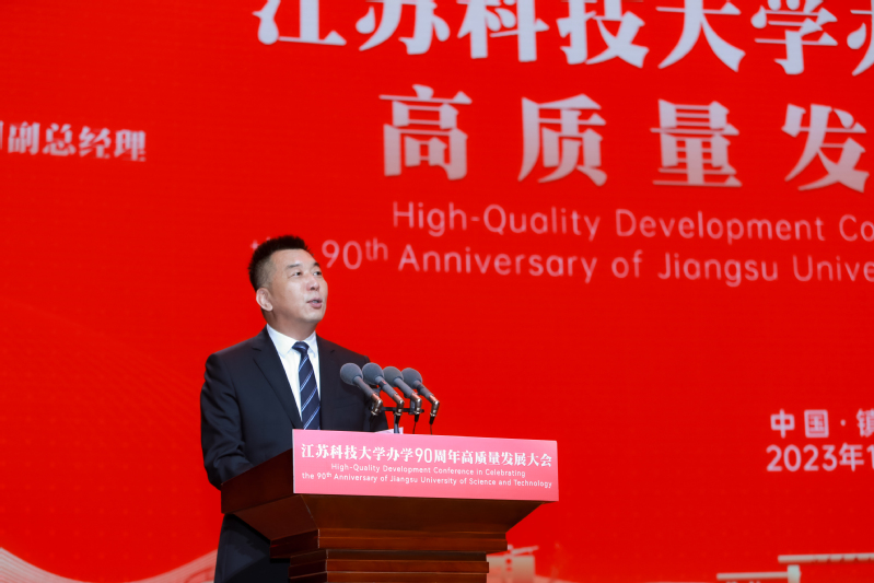中共鎮(zhèn)江市委書記馬明龍代表鎮(zhèn)江市委、市政府致辭。馬明龍說,90年來,一代又一代江科大師生恪守“篤學(xué)明德、經(jīng)世致用”校訓(xùn),立足“船舶、海洋、蠶?!碧厣珒?yōu)勢(shì),堅(jiān)持改革創(chuàng)新、人才強(qiáng)校、特色發(fā)展、開放發(fā)展,為國家船舶工業(yè)、國防建設(shè)和經(jīng)濟(jì)社會(huì)發(fā)展培養(yǎng)了眾多應(yīng)用型創(chuàng)新型人才,成就了“中國造船工程師搖籃”的美譽(yù)。學(xué)校始終與地方同攜手、共命運(yùn),為全市經(jīng)濟(jì)社會(huì)發(fā)展作出了重要貢獻(xiàn)。踏上新征程,我們要牢記囑托、感恩奮進(jìn),共同夯實(shí)“辦學(xué)”這個(gè)基礎(chǔ),攜手打造名城名校合作典范;深化“育人”這個(gè)宗旨,攜手共創(chuàng)人才“鎮(zhèn)興”更大榮光;扛起“發(fā)展”這個(gè)使命,攜手譜寫“很有前途”嶄新篇章。