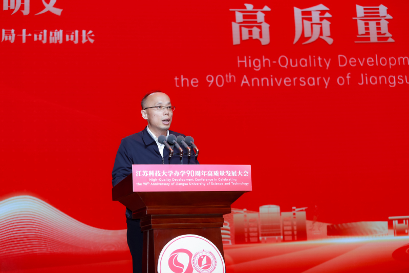 國家國防科技工業(yè)局姜明文副司長(zhǎng)致辭。他指出,國家國防科工局高度重視國防特色高校的發(fā)展,三次與江蘇省人民政府簽署共建江蘇科技大學(xué)的協(xié)議,江科大也是唯一一所有船海特色的地方共建高校。他希望學(xué)校進(jìn)一步厚植家國情懷,全面貫徹黨的教育方針,牢牢把握立德樹人根本任務(wù),堅(jiān)持服務(wù)國家重大戰(zhàn)略,積極融入地方發(fā)展。國家國防科工局將一如既往支持學(xué)校發(fā)展,與江蘇省政府協(xié)力幫助學(xué)校早日實(shí)現(xiàn)奮斗目標(biāo),為我國國防現(xiàn)代化建設(shè),船舶工業(yè)和經(jīng)濟(jì)社會(huì)發(fā)展再立新功。