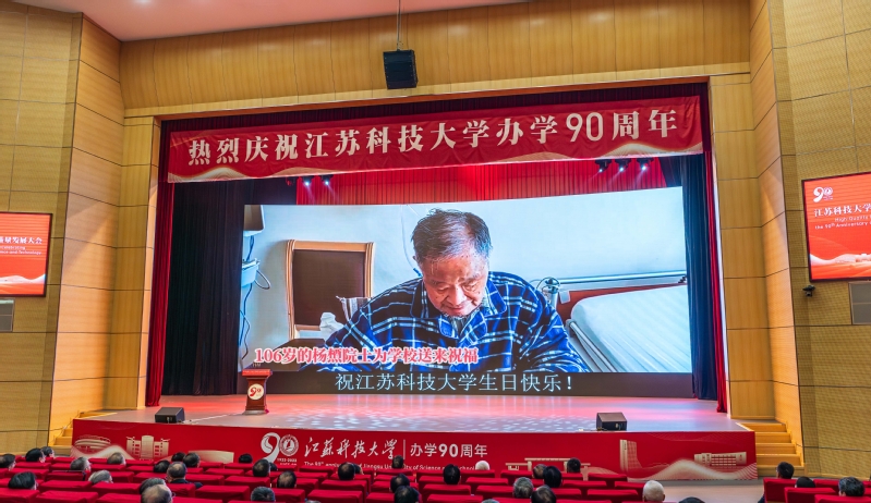 值此辦學(xué)90周年之際,江蘇科技大學(xué)收到了一份特殊的禮物——全球校友通過視頻方式為母校致上的生日祝?!獜您Q發(fā)童顏長(zhǎng)者到風(fēng)華正茂學(xué)子,大家滿懷深情厚誼,共同祝福江科大生日快樂,年年桃李、歲歲芬芳。與會(huì)嘉賓共同觀看校友祝福視頻,接續(xù)傳遞著百年樹人的歡欣喜悅。