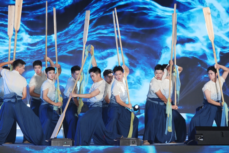 《尋夢深藍》舞蹈帶領觀眾走進神秘的藍色世界,以優美的肢體語言闡釋海洋文化,展現勇立潮頭的冒險精神,戰風斗浪的拼搏精神和海納百川的廣闊胸襟。