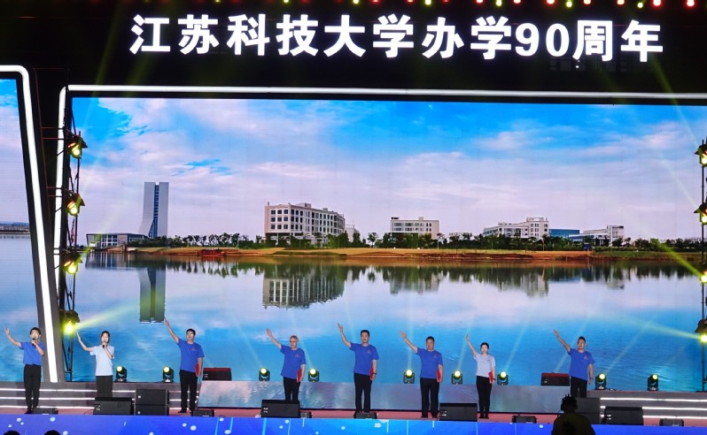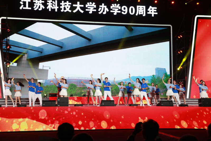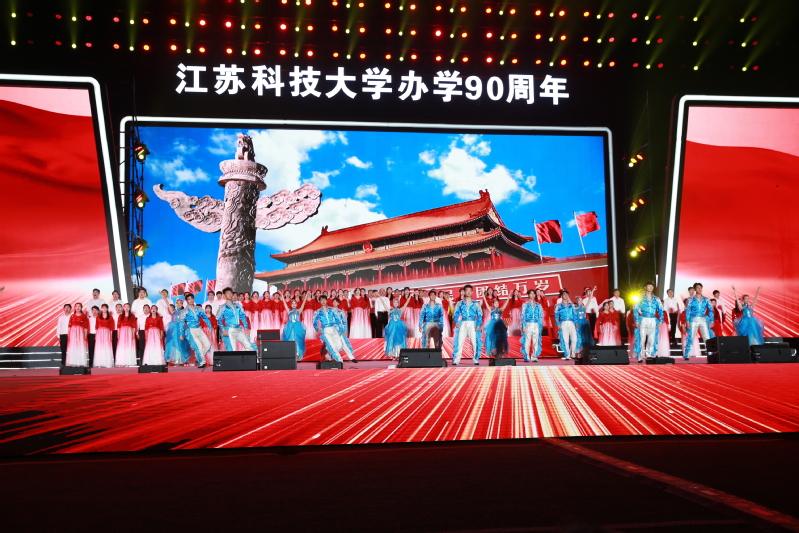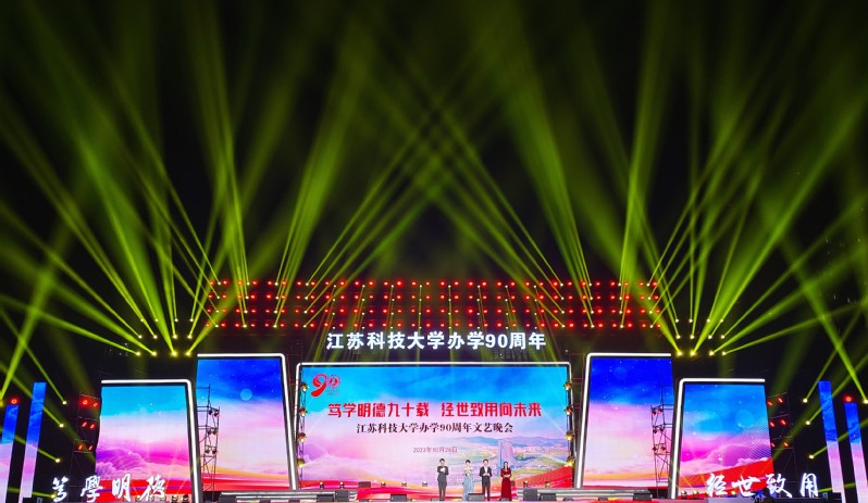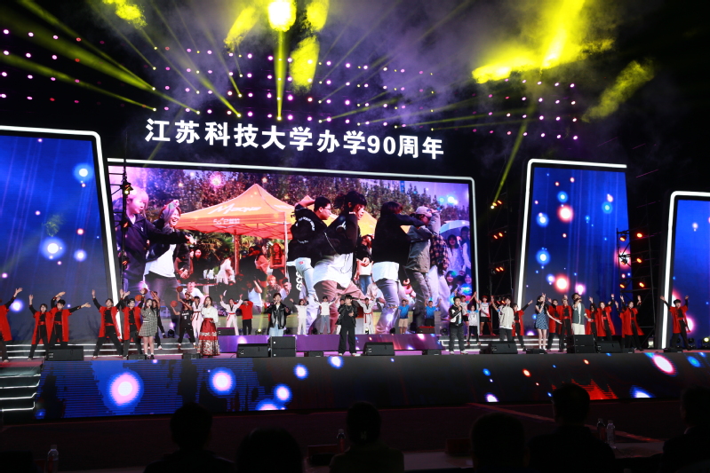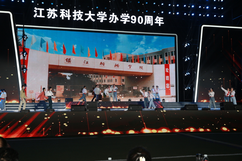 夜幕下的江蘇科技大學長山校區燈火璀璨,文理大樓教室燈光錯落組成“JUST90”字樣,西操場霓虹閃耀,云帆造型的舞臺炫彩亮相,江蘇科技大學這艘巍巍巨輪已張滿風帆,即將從新的歷史起點遠航。晚會分為“尋夢”“圓夢”“遠航”三個篇章,致敬江科大90載風雨兼程的光輝歲月,藝術呈現學校立足“船舶、海洋、蠶桑”辦學特色,服務國家戰略,托舉青春夢、科大夢、中國夢的生動現實,展望學校奮力開創高水平大學建設新局面的美好藍圖。
