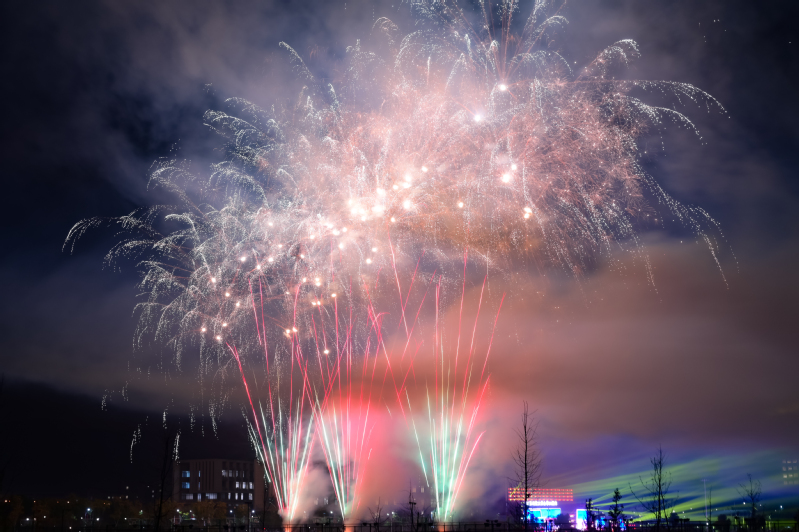 火樹銀花不夜天。在全場同聲高唱的《江蘇科技大學校歌》中,朵朵煙花炫彩綻放,演繹著夜空下最美好燦爛的圖景,寓意江蘇科技大學明天更美好,航程更輝煌。