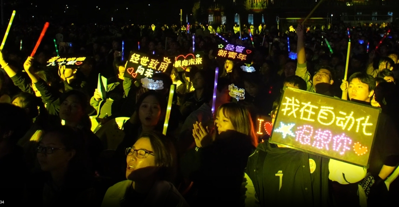 晚會現場,一幅創意自制燈牌點亮了操場一角,制作者體育學院大三學生艾欣祺介紹“從購買材料到制作成品花了五天時間。這是我給學校過生日的專屬儀式感!”校團委書記張海洋介紹,文藝晚會參演人員300多位,包括學校團委藝術中心教師、輔導員、學生、離退休教師、學校附屬幼兒園小朋友,其中還有7位校友代表。為了致敬辦學90周年,導演組從半年前開始籌劃編排,全體演職人員利用暑假和十一小長假時間抓緊排練,確保了晚會的華彩呈現。無人機節目總編孫靜表示,此次表演是團隊主動參與和學校邀請的雙向奔赴,節目通過展現辦學90周年元素,帶來現場極致觀感體驗。船海學院輔導員劉星在辦學80周年時還是一名江科大學生,辦學90周年晚會上,作為江科大老師參演《領航》節目。正在河南科技大學讀研的2020屆畢業生趙青秀參演朗誦《獻給你,我的母校》,她表示非常榮幸被邀請與幾位優秀校友共同表演,為母校取得的輝煌成就感到非常自豪。在慶典上表演《龍騰長山》的南京郵電大學龍獅團成員、大二國際經濟與貿易專業時子涵說,為了此次《龍騰長山》群舞表演,團隊花了一個月時間進行排練,非常高興能參加此次演出。