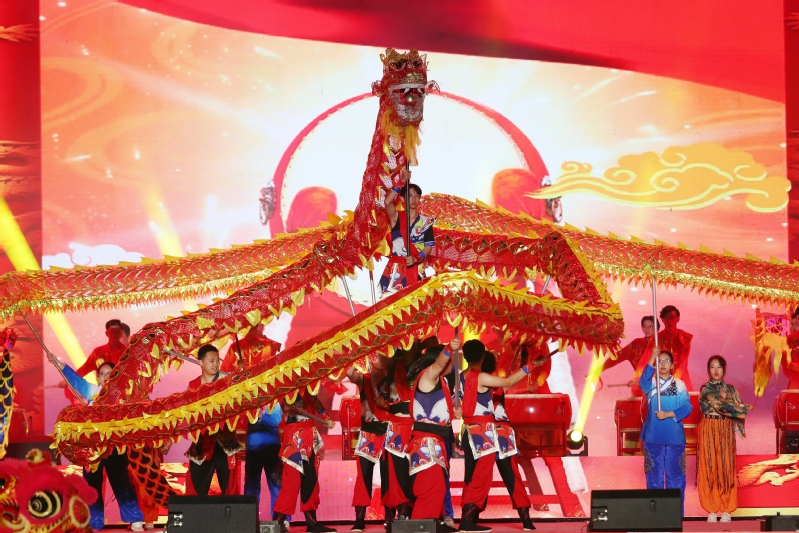在群舞《龍騰長山》磅礴有力的鼓點聲中,晚會第一篇章“尋夢”拉開帷幕。參演者中,有55位同學來自南京郵電大學龍獅團。