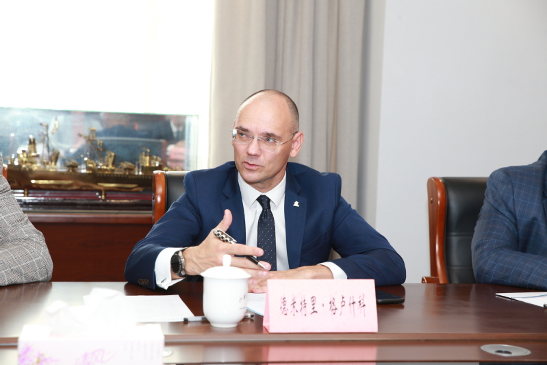 Dmitrii GLUSHKO 對嵇春艷校長的邀請與周到安排表示感謝。他表示非常榮幸能夠受邀來訪慶祝江蘇科技大學辦學90周年并在高質量發展大會上致辭,江蘇科技大學辦學90周年系列活動舉辦得非常盛大、成功,給他留下了深刻的印象。GLUSHKO校長指出,俄中兩國有著深厚的友誼與堅實的合作基礎,兩國全面戰略協作伙伴關系正處于高水平階段,正在扎實推進在經貿、教育、人文等領域的合作共識。莫爾多瓦國立大學與江蘇科技大學在教育、科技領域開展的務實合作正是對俄中兩國合作規劃的具體落實。俄方校長高度贊同嵇春艷校長提出的兩校未來合作方向,表示愿意為兩校共建中俄學院提供支持。GLUSHKO校長提議,除去在合作辦學、聯合實驗室、國際科研項目等領域的合作外,兩校還將加強人文交流,開展俄語及漢語師資互換等合作。