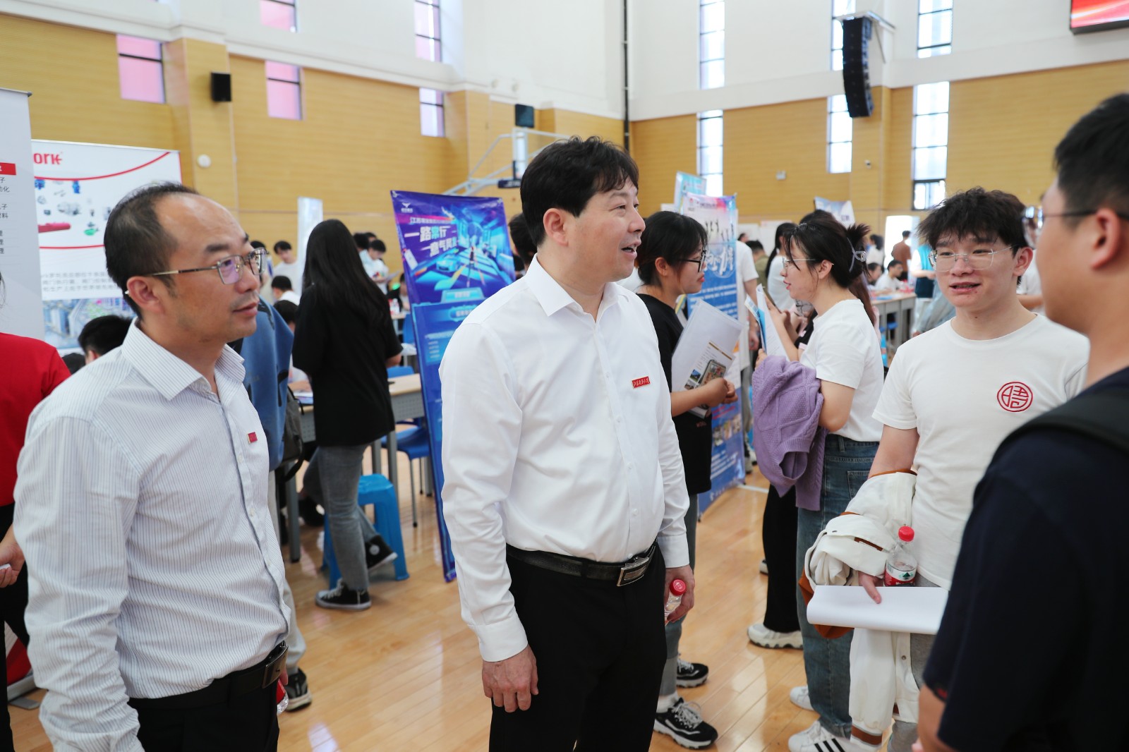 此次招聘會由江蘇省教育廳、江蘇省人力資源和社會保障廳主辦,江蘇省高校招生就業指導服務中心、江蘇省勞動就業管理中心、江蘇省職業介紹中心、江蘇科技大學承辦,共有181家企事業單位參會,涵蓋新能源新材料、高新制造、生物化工及信息軟件等多個行業,崗位需求人數8000余人,與我校各學科專業相匹配,呈現出單位質量高、崗位多樣化的特點。其中,央企國企、上市公司及高新技術等高質量用人單位超過80%。本次招聘會是在充分深入調研獲悉企業高校引才需求后迅速策劃組織的一次招聘活動,活動踐行江蘇省制造業高端化、智能化、綠色化發展戰略,結合鎮江地區高校畢業生就業實際,針對能源動力工程、新能源科學與工程、機械工程、材料工程等學科專業深入挖掘企業攬才需求,聯動高校、地方相關產業部門等協同發力,匯聚眾多名企踴躍參與,精準擴容優質崗位“蓄水池”。招聘會期間,胡愛祥與用人單位和畢業生親切交流,詳細了解企業用工需求和畢業生求職就業情況。