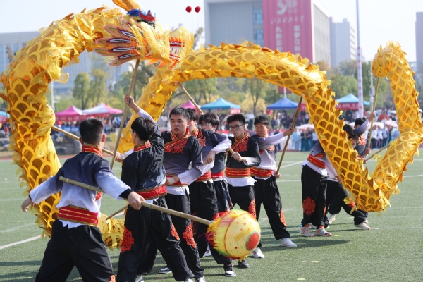 來自張家港校區的同學們帶來了“龍騰獅躍、獻禮科大”為主題的舞龍舞獅表演,巨龍翻騰起舞,象征著江科大勇敢、創新、團結和奮進的精神,雄獅起舞,代表著勇氣、力量和堅韌不拔的品質。