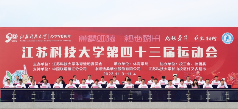 11月3日,江蘇科技大學第43屆運動會開幕式在長山校區主體育場舉行。校黨委書記周南平致辭,黨委常委、副校長潘錦全宣讀表彰文件。校領導安祥衛、李木旺、施偉東、周宏根,相關職能部門、各學院負責人和師生代表參加。