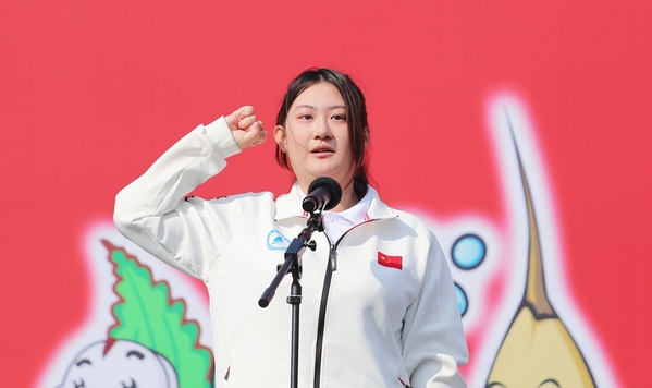 學生運動員代表、2023年第17屆中國大學生跆拳道錦標賽一等獎獲得者經濟管理學院2021級白蕾琪同學,裁判員代表、體育學院管慧香老師進行莊嚴宣誓。