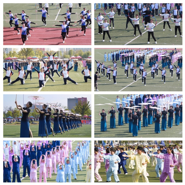 由工會組織,來自全校各單位的300余名教職工帶來了多元運動風采展示?;犹K“繩彩飛揚”、呼啦圈“快樂轉起來”、毽子操“毽舞青春”、旗袍秀“清雅·秋韻”以及自編霍元甲版八段錦,均是各基層工會和教職工協會選送的“一會一品”特色運動品牌項目,動靜之間,皆成風景,彰顯了我校教師快樂工作、健康生活的文化氛圍。