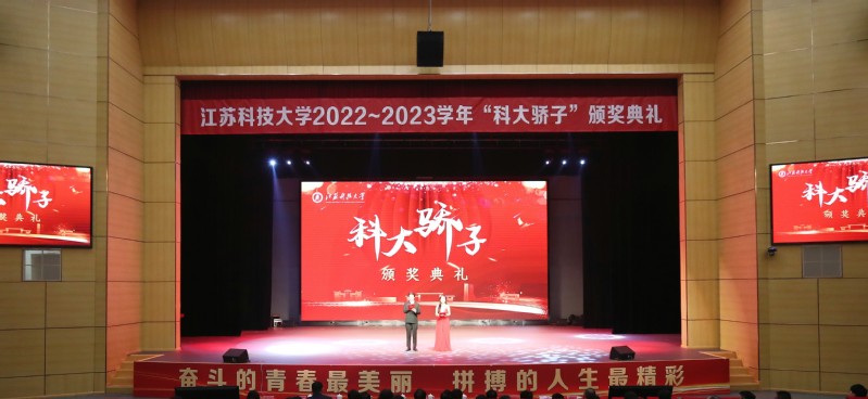 11月9日,江蘇科技大學(xué)在長(zhǎng)山校區(qū)船苑劇場(chǎng)舉行2022-2023學(xué)年“科大驕子”頒獎(jiǎng)典禮,表彰在“德、智、體、美、勞”等方面有突出表現(xiàn)、受到省級(jí)以上獎(jiǎng)勵(lì)的先進(jìn)個(gè)人和集體。校領(lǐng)導(dǎo)周南平、嵇春艷、潘錦全、安祥衛(wèi)、李木旺、施偉東、周宏根、葉永林,相關(guān)職能部門、各學(xué)院負(fù)責(zé)人,全體輔導(dǎo)員和在校學(xué)生參加典禮。