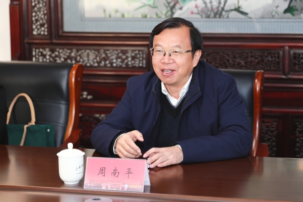 會上,周南平書記對章劍華主席一行的到來表示熱烈歡迎,并簡要介紹了學校的辦學歷史及取得的成績。他表示,多年來,學校立足“船舶、海洋、蠶?!碧厣珒瀯荩粩嗵嵘萍紕撔履芰?,全力服務國家重大戰略需求,取得了顯著成效。他希望可以通過文字記錄的方式,回顧中國船舶發展史,講好中國海洋故事,提升中國海洋話語的傳播力,展示中國大國地位。