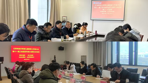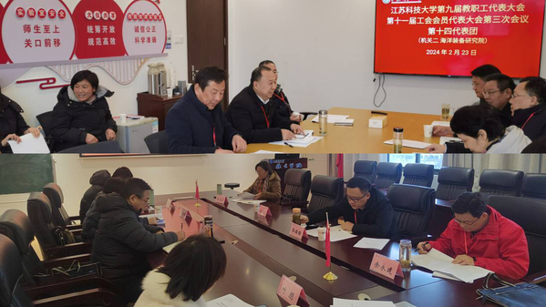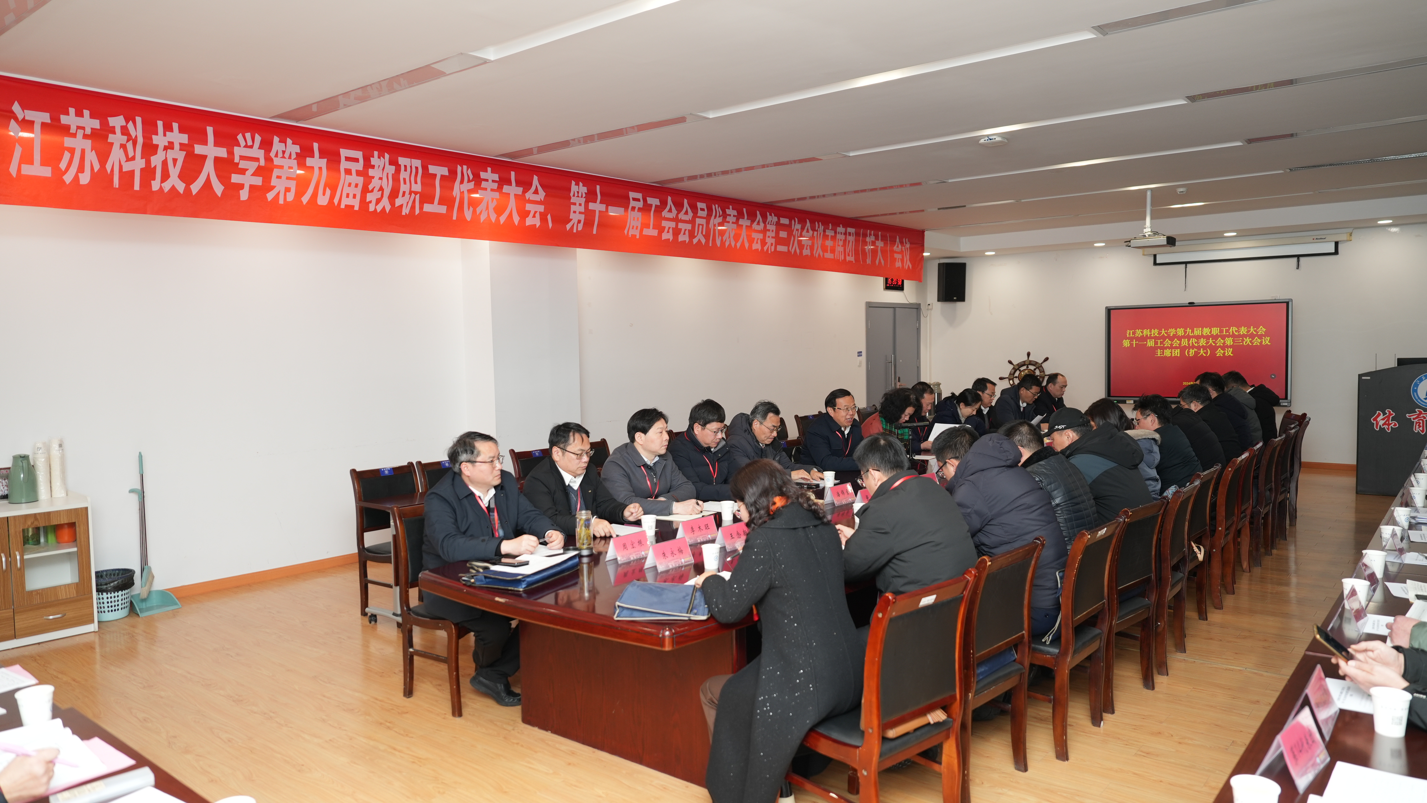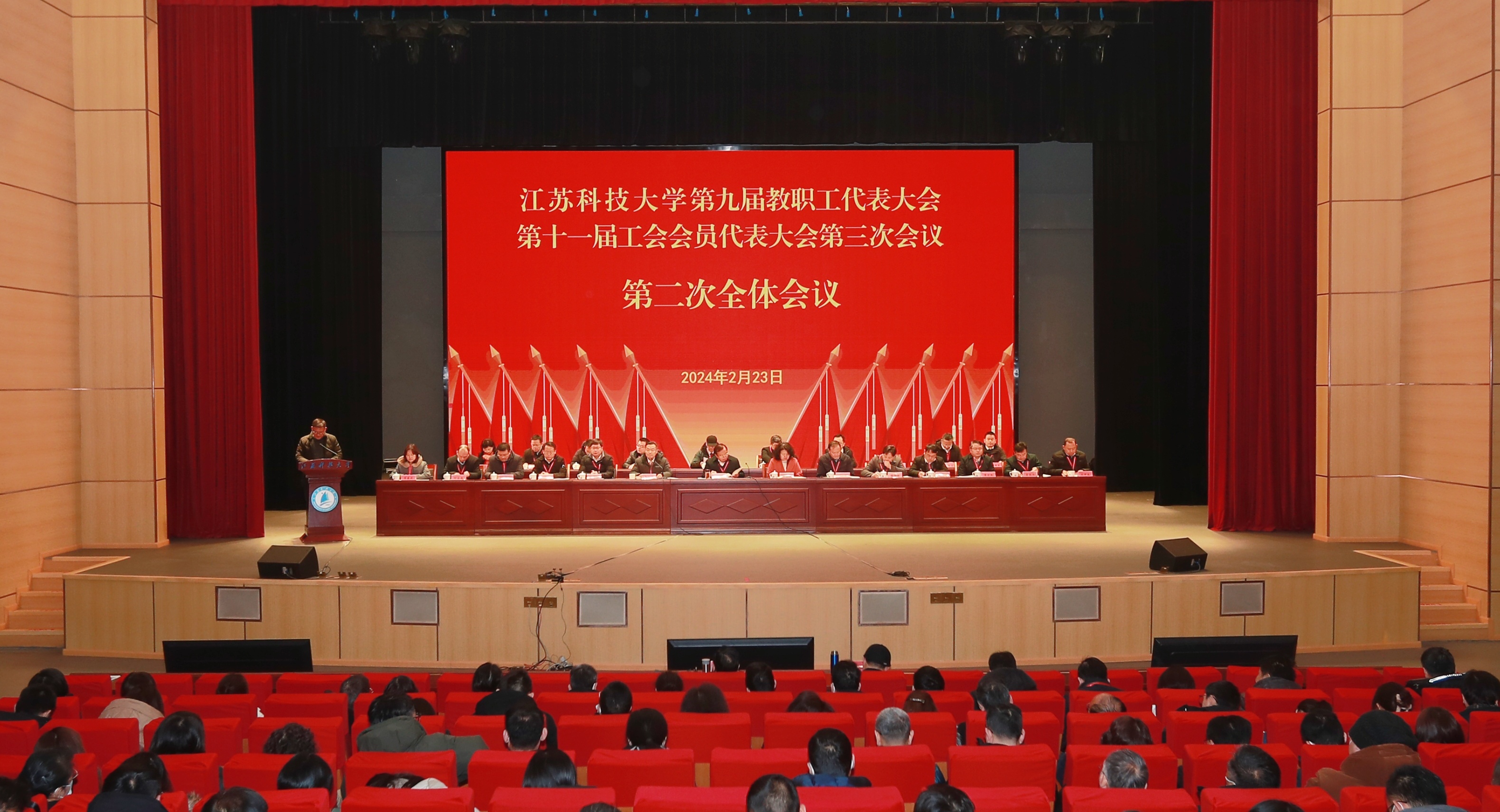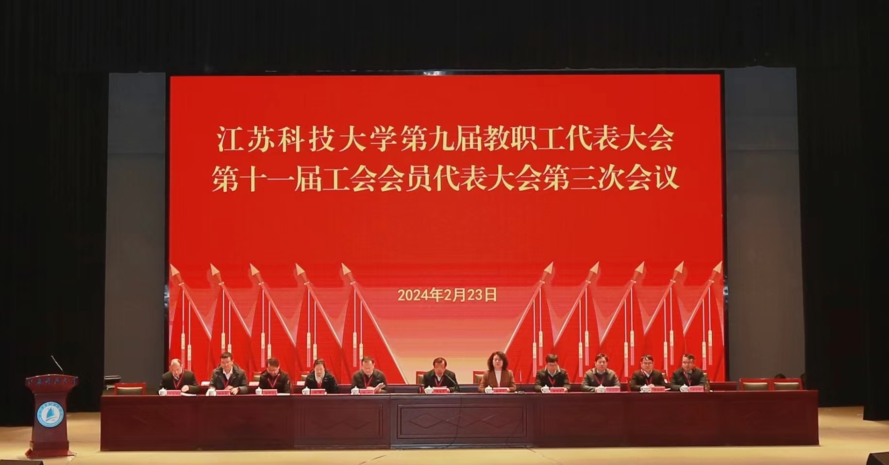 凝心聚智謀發展,砥礪奮進啟新程。2月23日,江蘇科技大學第九屆教代會、第十一屆工代會第三次會議(以下簡稱“雙代會”)在長山校區召開。校領導周南平、嵇春艷、湯建、潘錦全、任南、胡愛祥、安祥衛、李木旺、施偉東、周宏根、葉永林,校黨委常委李恒川、周春燕、劉新波,以及全體正式代表、特邀代表、列席人員參加會議。