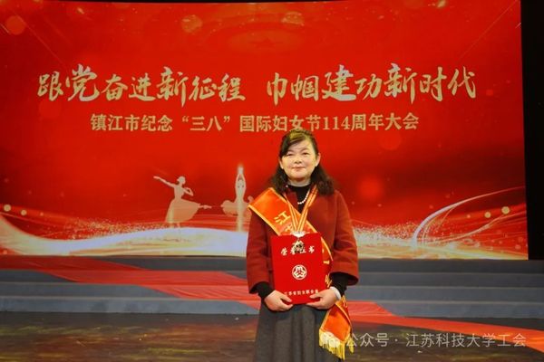 3月6日上午,鎮江市紀念“三八”國際婦女節114周年在市藝術劇院舉行,袁愛華教授接受表彰證書和獎牌。