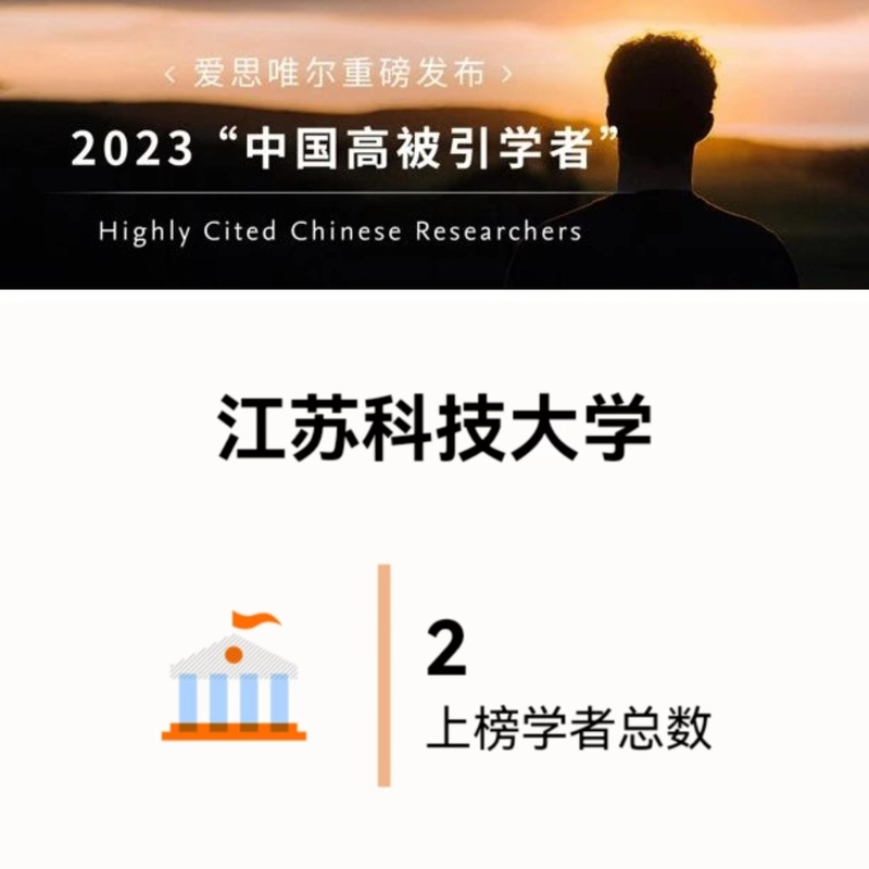 2024年3月27日,全球信息分析公司愛思唯爾(Elsevier) 重磅發布2023“中國高被引學者”(Highly Cited Chinese Researchers)榜單,江蘇科技大學副校長施偉東教授、理學院周思中教授入選榜單。