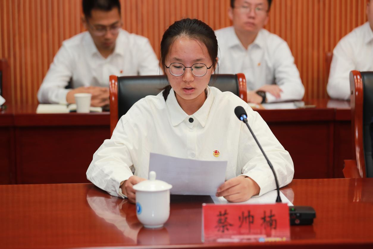 “立足新時代,我們江科大的青年師生要進一步繼承和弘揚五四精神,踐行‘篤學明德、經世致用’的校訓精神。在新時代的歷史方位上,我們必須把五四精神與時代主題、發展主線、前進主流緊密結合,勇擔使命,埋頭苦干,再立新功。”江蘇省青年五四獎章集體代表環境與化學工程學院葉雷凱同學、中國大學生自強之星(已公示)理學院程冰潔同學、“挑戰杯”全國特等獎團隊代表機械工程學院蔡帥楠同學、校大學生藝術團播音主持與表演團團長經濟管理學院潘榕同學結合個人經歷分享了學習體會,通過個人經歷展現了青春的拼搏與擔當。