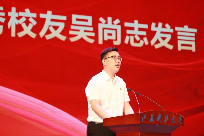 吳尚志學長分享了自己的工作經歷和奮斗感悟,勉勵畢業生黨員永葆對黨忠誠可靠的品質,用自己的一言一行擦亮江科大學子的名片。