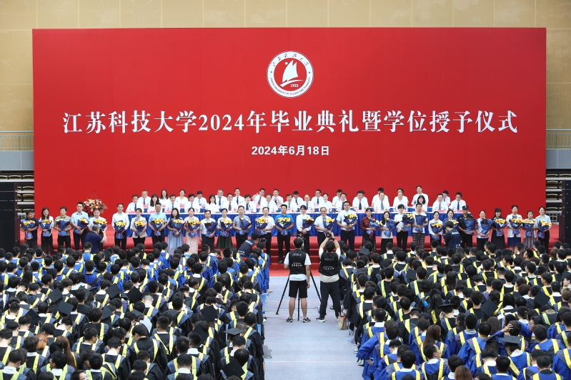 鳳凰花開,驪歌縈耳。6月18日上午,江蘇科技大學2024年畢業典禮暨學位授予儀式閃亮啟幕。4558位本科同學、1562位博碩士研究生同學和151位來自33個國家的留學生接受導師團撥穗正冠,共上大學“最后一課”,懷揣殷殷囑托和深深祝福奔赴山海,續寫人生新篇章。學校為每位畢業生送上“獨家畢業禮物”——一盞復刻學校地標建筑的紙雕夜燈,寓意母校的溫暖光輝將一直為學子們照亮錦繡前程。18日還是25位畢業同學的生日,學校特別準備了禮物,祝他們畢業和生日“雙份”快樂。