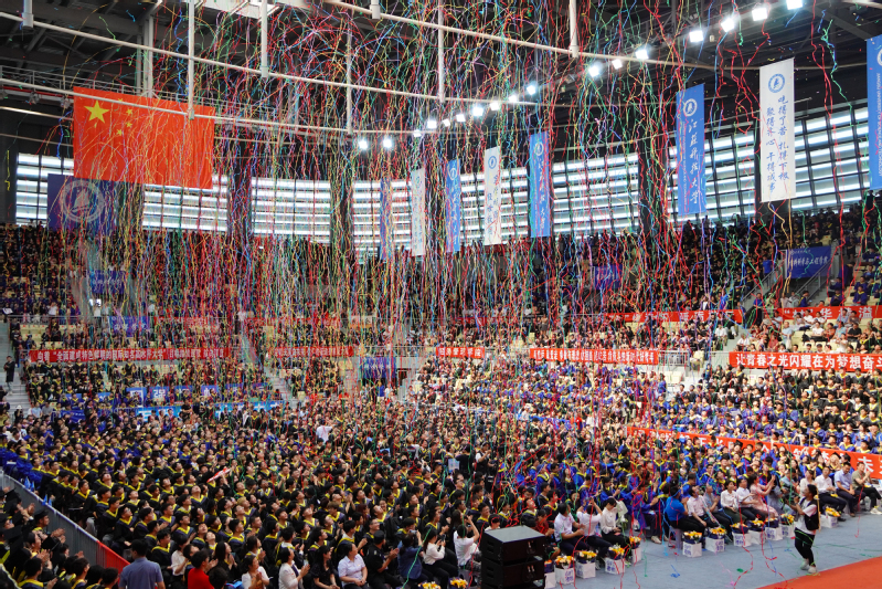 在書記的祝福中,萬千彩帶從天而降,將這閃耀的時刻裝點得更加繽紛絢爛。伴著掌聲,畢業典禮告一段落。中場休息時,大學生藝術團的同學們用充滿青春活力的歌聲表達了對畢業生的真摯祝愿。