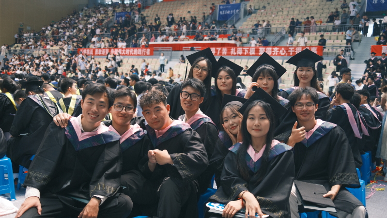 歡呼迭起,掌聲雷動。導師們身著導師服上臺站定,莊重的學位授予儀式正式開始。畢業生身穿學位服,依次上臺領取學位證書,學位委員會全體導師為他們撥穗正冠、頒發學位證書并合影留念,學位授予儀式圓滿完成。瑩瑩玉壺心,依依惜別情。臺下,畢業生們與摯友相攜、與父母相擁,合影留念,用相機定格美好的瞬間。