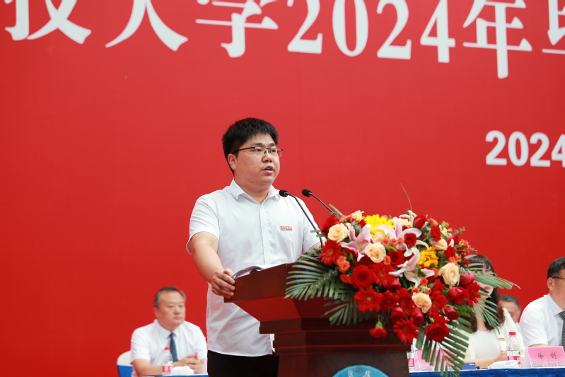 教職工代表、科學技術研究院副院長李陽祝賀各位同學順利畢業,希望大家立大志、做大事,顧大局、講格局,素心做人、用心做事,信心滿懷書寫青春之歌、報國之曲。