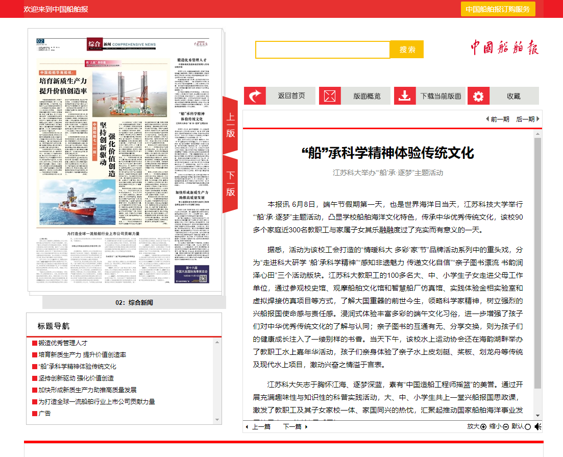 本報訊 6月8日,端午節假期第一天,也是世界海洋日當天,江蘇科技大學舉行“‘船’承·逐夢”主題活動,凸顯學校船舶海洋文化特色,傳承中華優秀傳統文化,該校90多個家庭近300名教職工與家屬子女其樂融融度過了充實而有意義的一天。