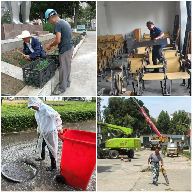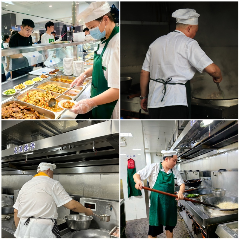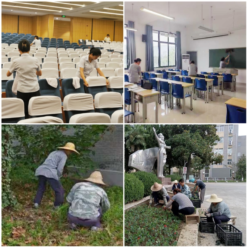 在酷熱的天氣里,后勤干部職工們各司其職,忙碌而有序,為約7000名留校師生的學習、生活和科研保駕護航。飲服中心開放5個餐廳,員工們在高溫的廚房里揮汗如雨,精心準備每一份餐食,確保留校師生的飲食安全與營養健康。公寓中心不僅負責14個開放組團日常的值班與清潔工作,還提前為7129名新生入住做好充分的準備,從打掃房間到安排床位,每一項工作都細致入微。物業中心在做好所有開放辦公樓、教學樓、圖書館等場所的物業服務的基礎上,還完成大學生勞動基地日常管護、桑樹修剪,并為學校各類比賽活動、會務等提供服務保障近70場次,同時加強防汛防臺工作,確保校園環境的整潔與安全;校園管理科協調合作單位完成了草花補植、草坪鋪設、抗旱澆水、病蟲害防治、草坪除草、色塊修剪等工作。