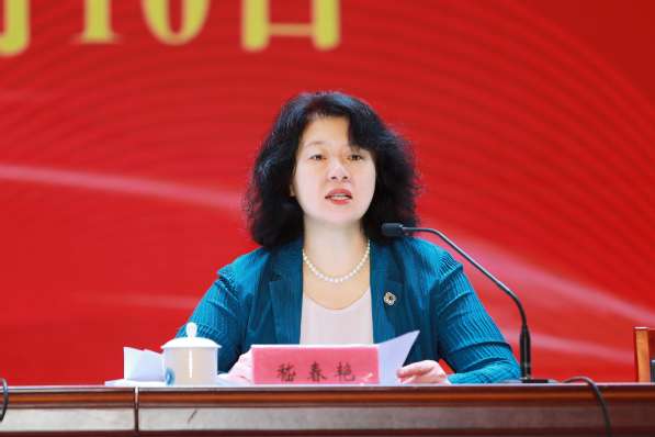 校長嵇春艷致辭,代表學校向全力奮斗在學校事業高質量發展各條戰線上的全校教職工致以最崇高的敬意和最誠摯的節日問候,向受到表彰的先進集體和先進個人表示熱烈祝賀。