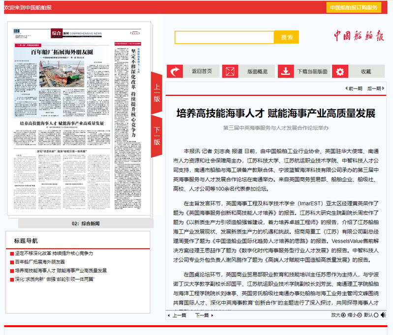 本報訊 記者 劉志良 報道 日前,由中國船舶工業行業協會、英國駐華大使館、南通市人力資源和社會保障局主辦,江蘇科技大學、江蘇航運職業技術學院、中智科技人才公司支持,南通市船舶與海工裝備產教聯合體、寧波藍智海洋科技有限公司承辦的第三屆中英海事服務與人才發展合作論壇在南通舉辦。來自英國商務貿易部、船舶企業、船級社、高校、人才公司等100余名代表參加論壇。