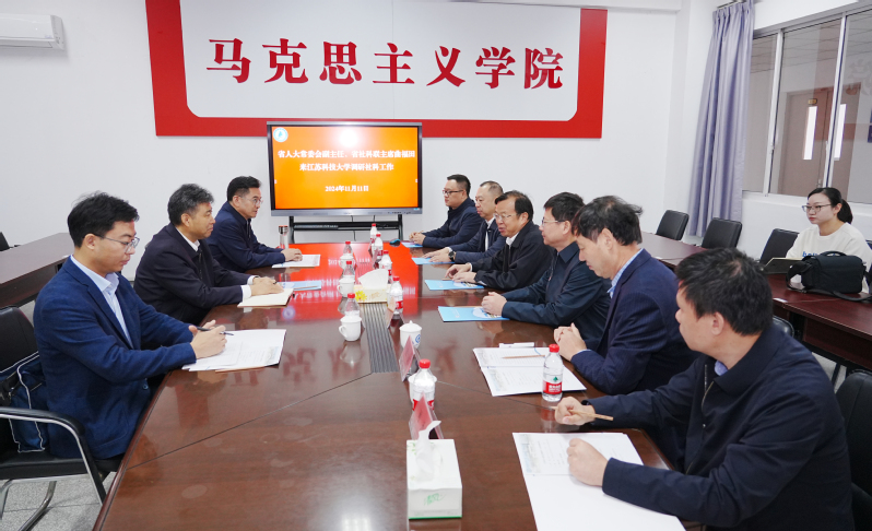 周南平對曲福田一行表示熱烈歡迎。他介紹了江蘇科技大學的辦學情況、學科建設、師資隊伍、科研平臺及服務國家重大戰略的情況,并特別指出,學校立足“船舶、海洋、蠶桑”三大辦學特色,不斷提升科技創新能力,全力服務國家重大戰略需求;圍繞服務船舶行業、服務地方經濟社會發展,加強哲學社會科學研究工作,取得了顯著成效。