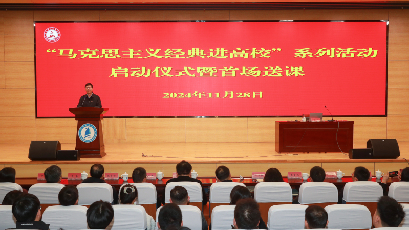 11月28日下午,鎮(zhèn)江市委黨校“馬克思主義經(jīng)典進(jìn)高校”系列活動(dòng)啟動(dòng)儀式暨首場送課在江蘇科技大學(xué)舉行。江蘇大學(xué)、江蘇科技大學(xué)、江蘇農(nóng)林職業(yè)技術(shù)學(xué)院、江蘇省交通技師學(xué)院、鎮(zhèn)江高等??茖W(xué)校、江蘇航空職業(yè)技術(shù)學(xué)院、江蘇省鎮(zhèn)江技師學(xué)院7所駐鎮(zhèn)高校領(lǐng)導(dǎo)及400多名師生參加了此次活動(dòng)。活動(dòng)由黨委常委、副校長潘錦全主持。