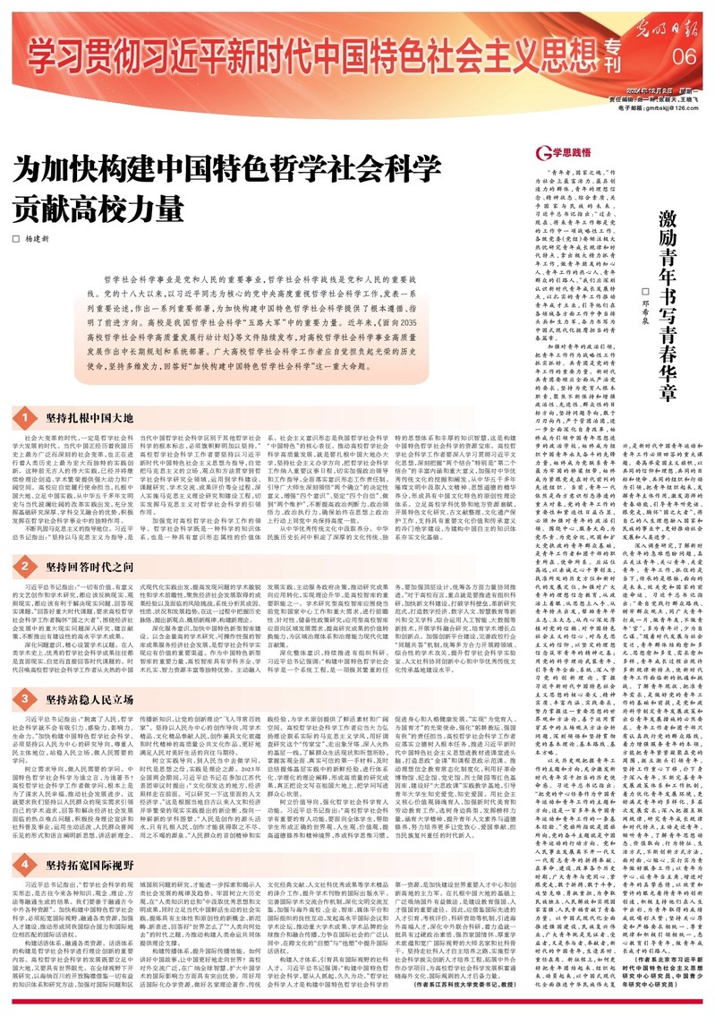 社會大變革的時代,一定是哲學社會科學大發展的時代。當代中國正經歷著我國歷史上最為廣泛而深刻的社會變革,也正在進行著人類歷史上最為宏大而獨特的實踐創新。這種前無古人的偉大實踐,已經并將繼續給理論創造、學術繁榮提供強大動力和廣闊空間。高校應自覺履行使命擔當,扎根中國大地、立足中國實踐,從中華五千多年文明史與當代波瀾壯闊的改革實踐出發,充分發揮基礎研究深厚、學科交叉融合的優勢,積極發揮在哲學社會科學事業中的獨特作用。