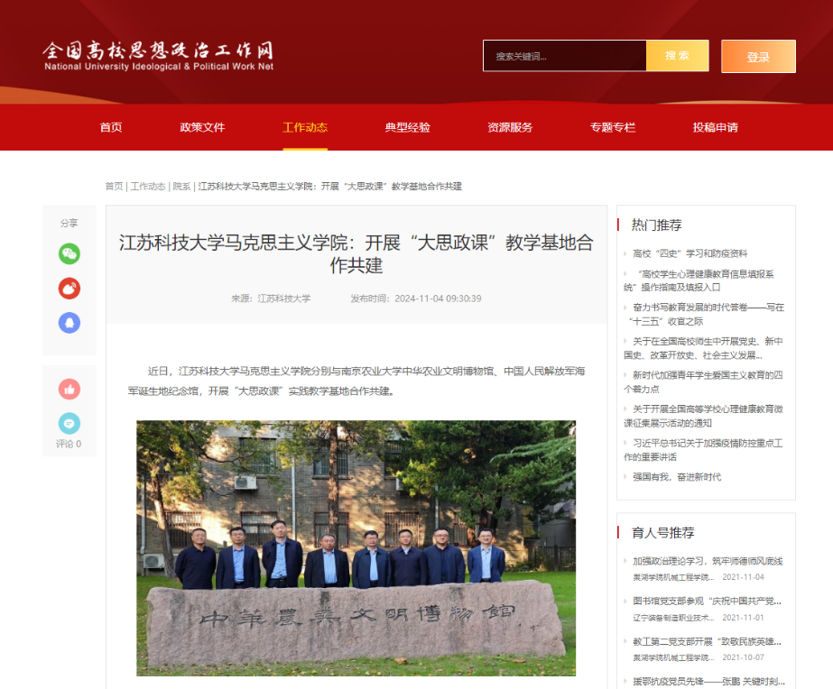 全國高校思政網(wǎng)報道馬克思主義學(xué)院開展“大思政課”實踐教學(xué)基地合作共建