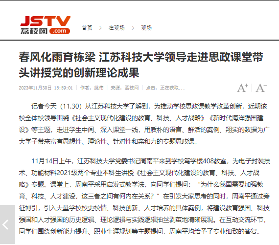 荔枝新聞報道校領(lǐng)導(dǎo)走進思政課堂帶頭講授黨的創(chuàng)新理論成果