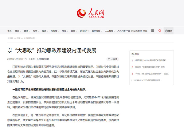 人民網(wǎng)專題報道學(xué)校以“大思政”推動思政課建設(shè)內(nèi)涵式發(fā)展