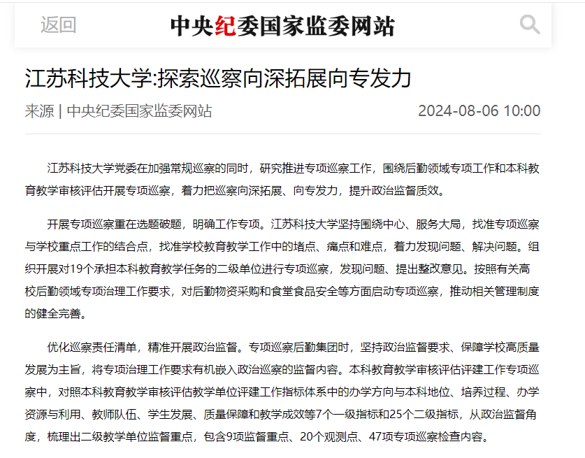 中央紀(jì)委國家監(jiān)委網(wǎng)站報道學(xué)校經(jīng)驗性文章