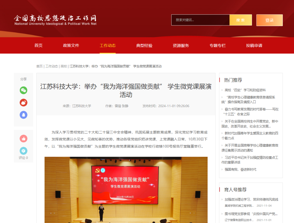 全國高校思政網(wǎng)報道學(xué)?!拔覟楹Q髲妵鲐暙I”學(xué)生微黨課展演活動