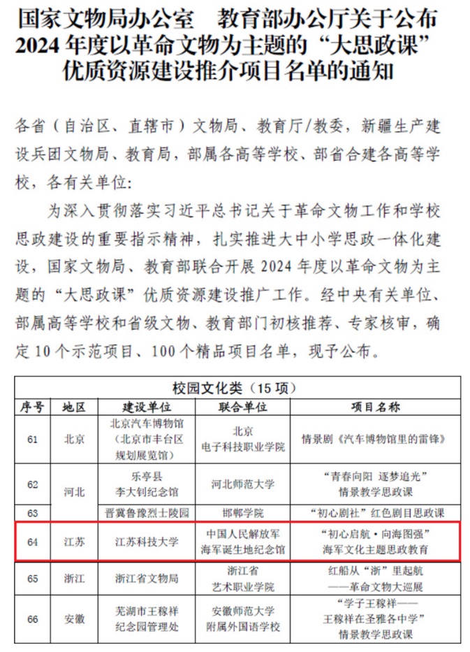 學(xué)校獲批2024年度以革命文物為主題的“大思政課”優(yōu)質(zhì)資源建設(shè)推介精品項目
