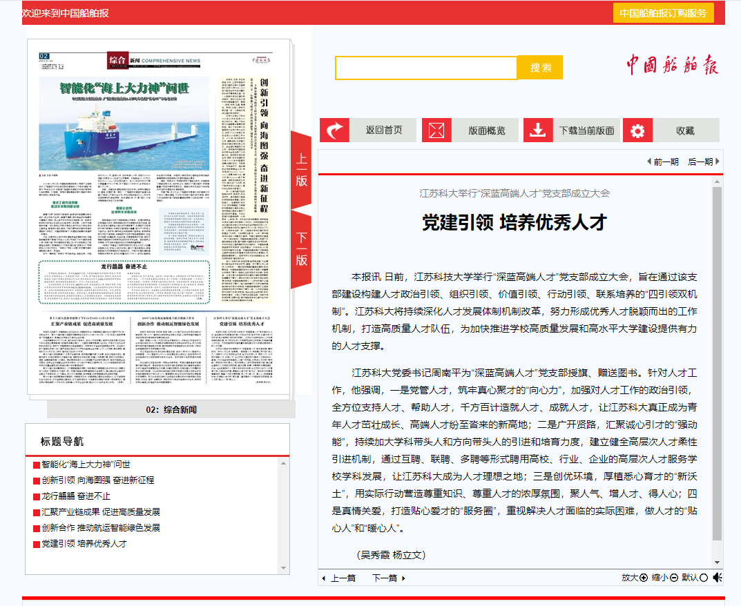 《中國船舶報》報道學(xué)?!吧钏{高端人才”黨支部成立大會